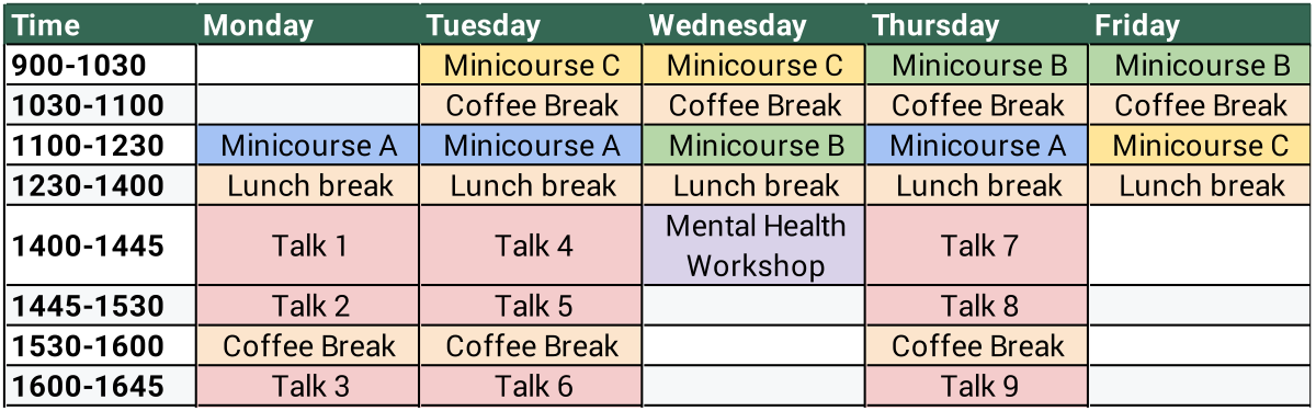 The goal of this conference is to bring together early-career researchers from the Combinatorial Synergies programme. Mornings will be dedicated to mini-courses and afternoons to research talks contributed by participants. We will also have a workshop on the topic of mental well-being in the scope of PhD studies.